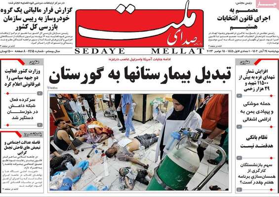 صفحه نخست روزنامههای صبح امروز چهارشنبه ۲۴ آبان ۱۴۰۲ را در ادامه مشاهده میکنید.