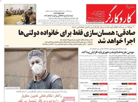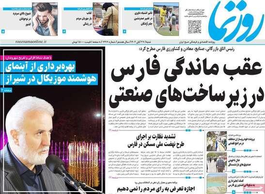 صفحه نخست روزنامههای شنبه ۲۷ آبان ۱۴۰۲