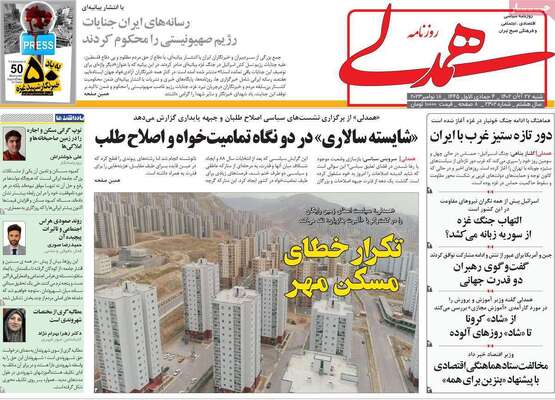 صفحه نخست روزنامههای دوشنبه ۱ دی ۱۴۰۴