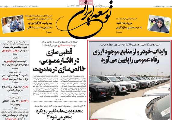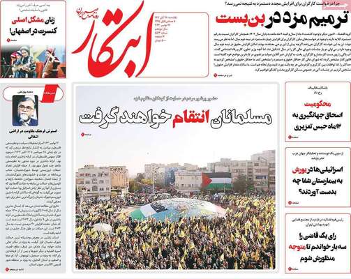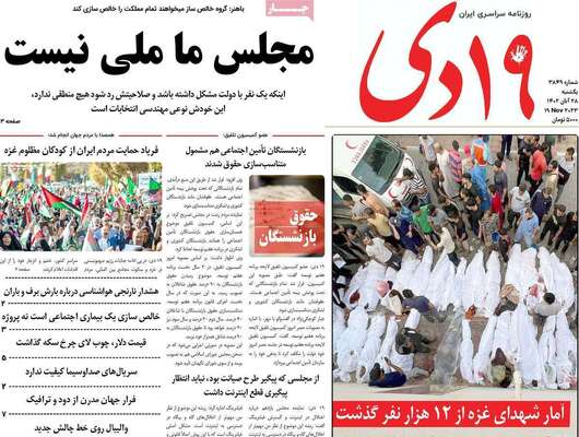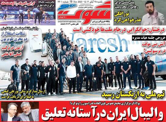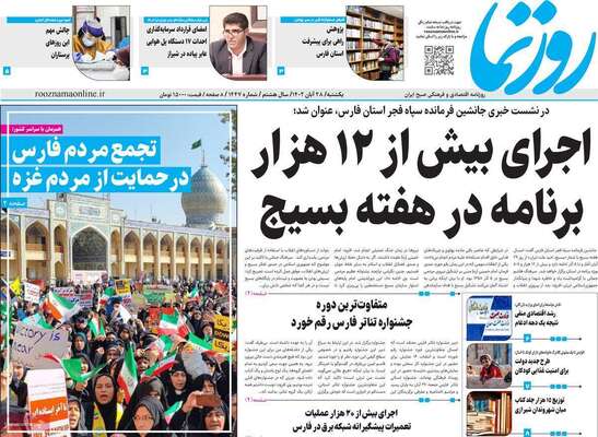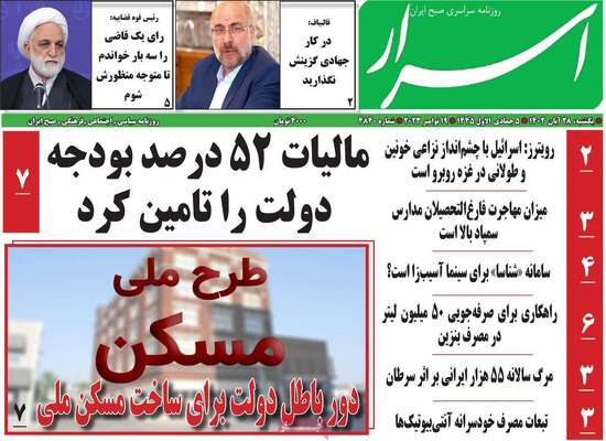 صفحه نخست روزنامههای یکشنبه ۲۸ آبان ۱۴۰۲