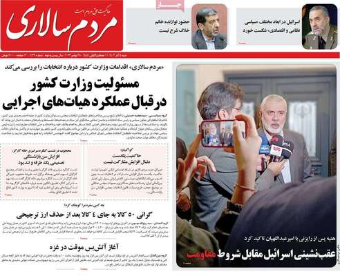 صفحه نخست روزنامههای یکشنبه ۳۰ آذر ۱۴۰۴