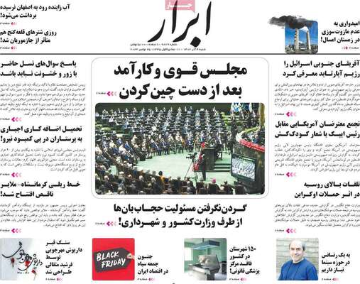 صفحه نخست روزنامههای شنبه ۴ آذر ۱۴۰۲