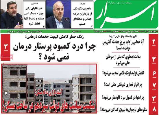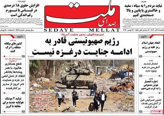صفحه نخست روزنامههای یکشنبه ۵ آذر ۱۴۰۲