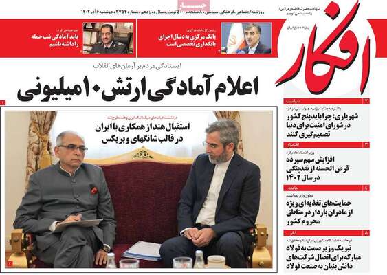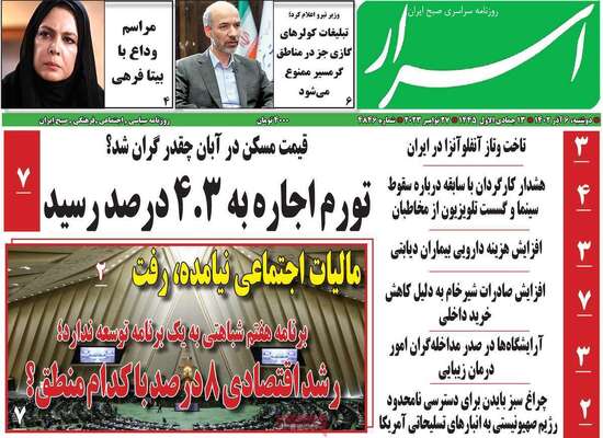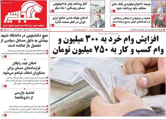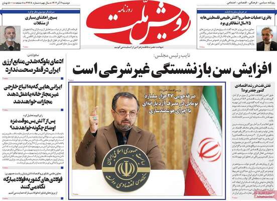 صفحه نخست روزنامههای دوشنبه ۶ آذر ۱۴۰۲