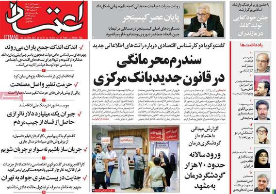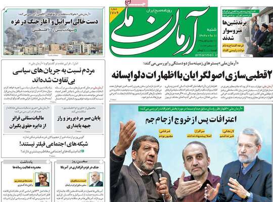 صفحه نخست روزنامههای دوشنبه ۱ دی ۱۴۰۴
