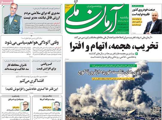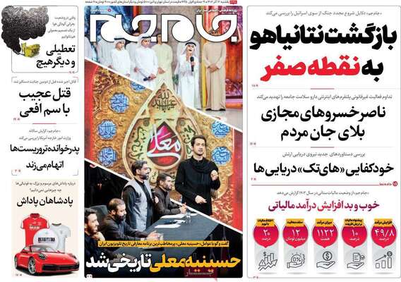 صفحه نخست روزنامه های کشور