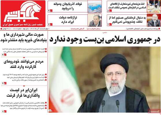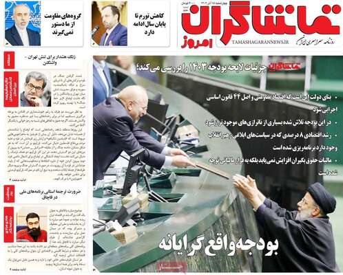 صفحه نخست روزنامههای یکشنبه ۳۰ آذر ۱۴۰۴