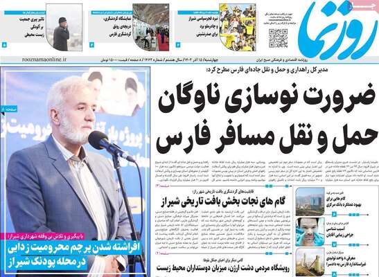 صفحه نخست روزنامههای چهارشنبه ۱۵ آذر ۱۴۰۲