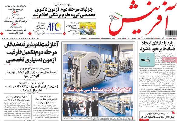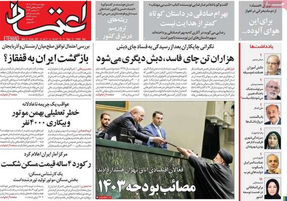 صفحه نخست روزنامههای یکشنبه ۳۰ آذر ۱۴۰۴