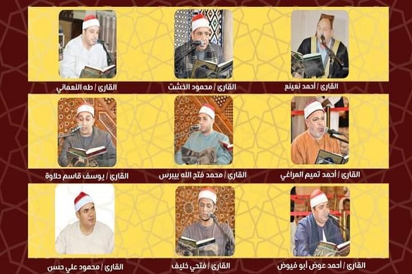 قاریان ارشد مصری حاضر در این ختم عبارتاند از دکتر احمد نعینع، شیخ محمود الخشت، شیخ طه النعمانی، قاری شیخ احمد تمیم المراغی، شیخ محمد فتح الله بیبرس، قاری شیخ یوسف قاسم حلاوه، قاری احمد عوض ابو فیوض، قاری شیخ فتحی خلیف و قاری شیخ محمود علی حسن.