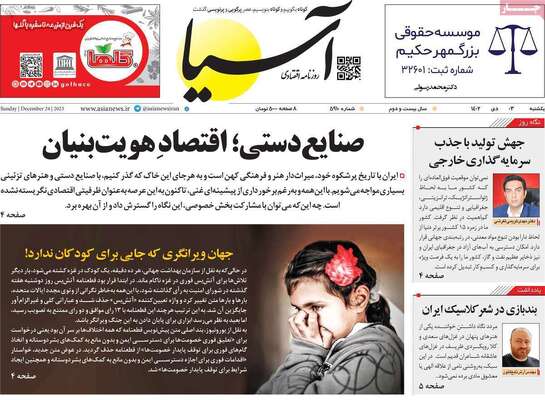 صفحه نخست روزنامههای یکشنبه ۳ دی ۱۴۰۲