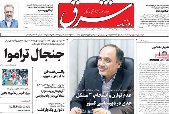 صفحه نخست روزنامههای دوشنبه ۱ دی ۱۴۰۴