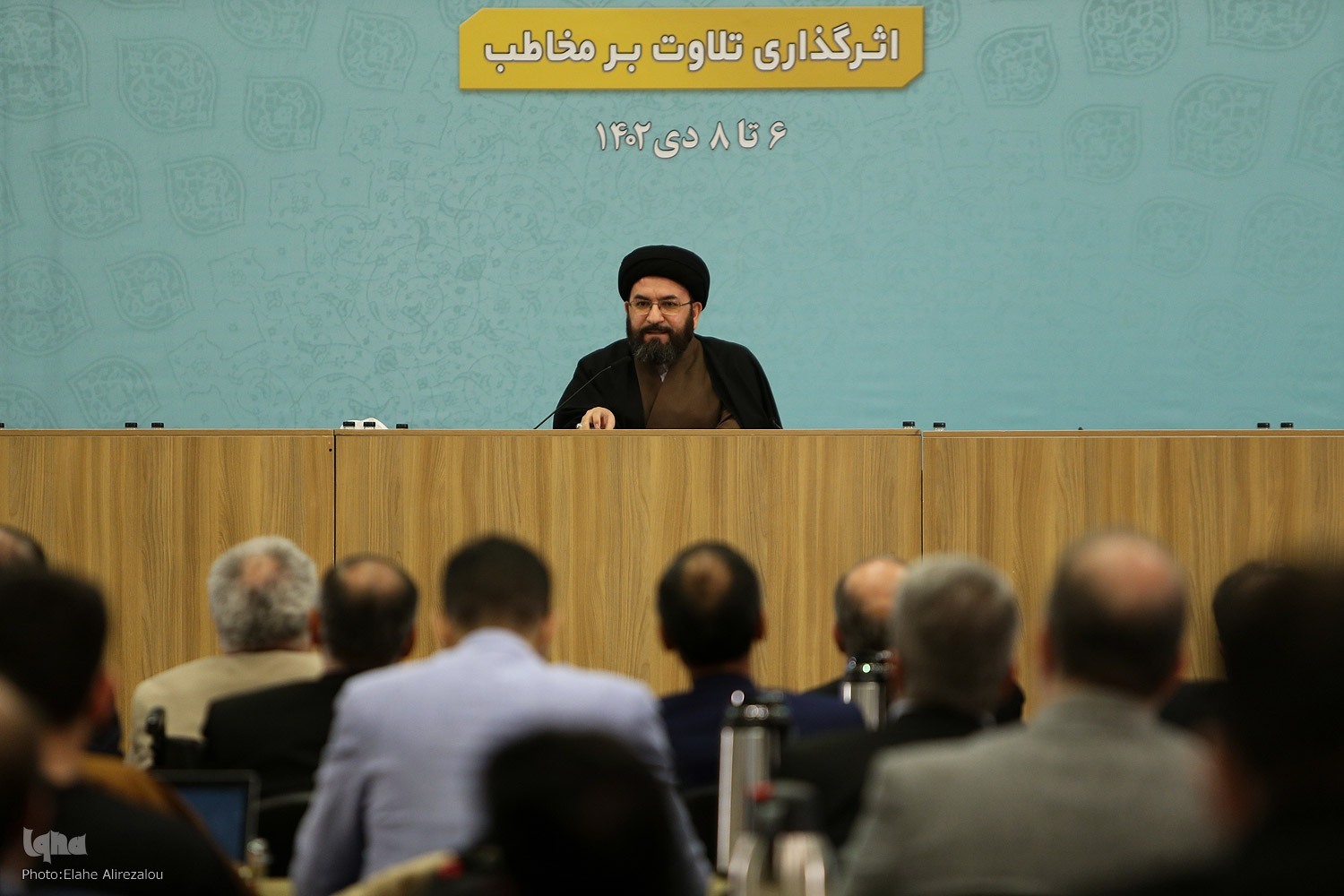 حجتالاسلام سیدمصطفی حسینی، دبیر شورای توسعه فرهنگ قرآنی در ابتدای ارائه خود گفت: حضرت محمد(ص) میفرمایند ساختن مساجد برای اقامه قرآن بوده است و طبعا قرآن و مسجد با هم ارتباط وثیقی دارند. مناسبترین مکان برای تلاوت قرآن مسجد است. حال برای اینکه این مساجد بتوانند در تلاوت نیز اثرگذار باشد به برخی مؤلفهها نیاز دارد که برخی از آنها ظاهری یعنی بیرونی و برخی دیگر باطنی یعنی درونی است؛ برخی از آنها به قاری قرآن مربوط است و بعضی به مستمع و بعضی هم به عوامل دیگری، اعم از زمان و مکان مربوط است.