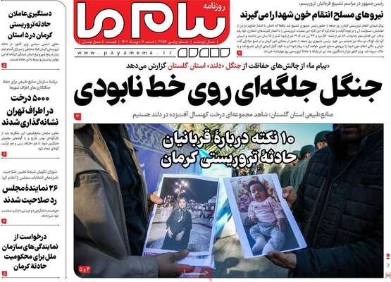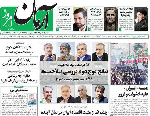صفحه نخست روزنامههای یکشنبه ۳۰ آذر ۱۴۰۴
