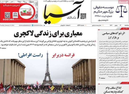 صفحه نخست روزنامههای سهشنبه ۳ بهمن ۱۴۰۲ را در ادامه مشاهده میکنید.