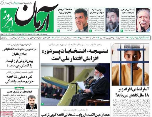 صفحه نخست روزنامههای یکشنبه ۳۰ آذر ۱۴۰۴