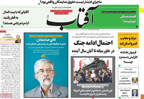 صفحه نخست روزنامههای یکشنبه ۳۰ آذر ۱۴۰۴