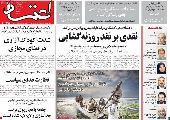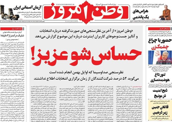 صفحه نخست روزنامههای یکشنبه ۳۰ آذر ۱۴۰۴