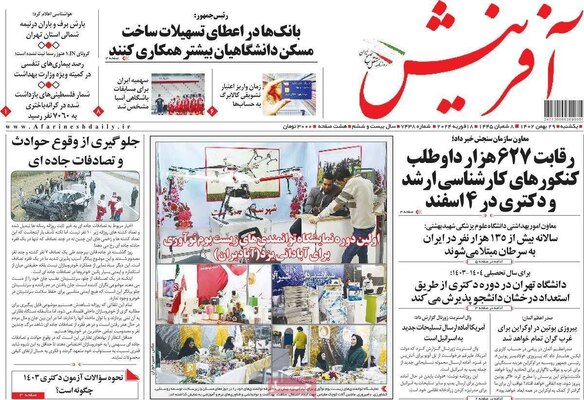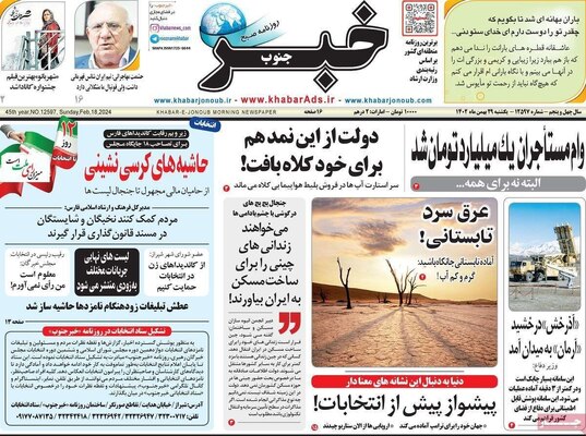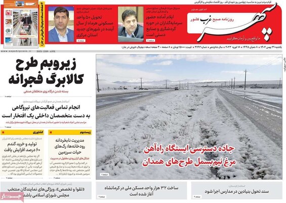 صفحه نخست روزنامههای یکشنبه ۲۹ بهمن ۱۴۰۲