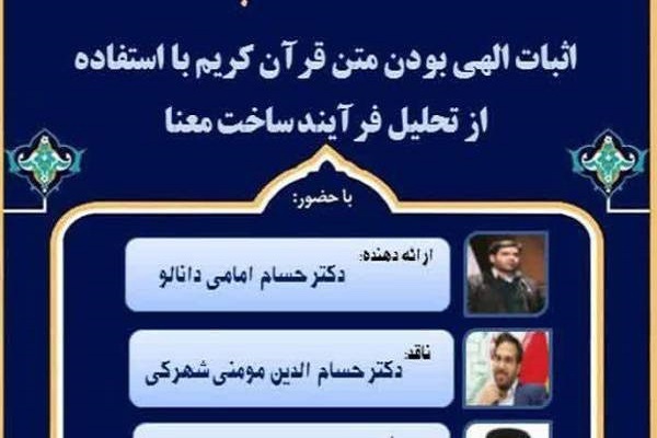 به گزارش ایکنا، نشست «اثبات الهی بودن متن قرآن کریم با استفاده از تحلیل فرآیند ساخت معنا» امروز دوشنبه 21 اسفندماه از سوی مدرسه علمیه زینبیه با همکاری پژوهشگاه فرهنگ و معارف اسلامی برگزار شد.