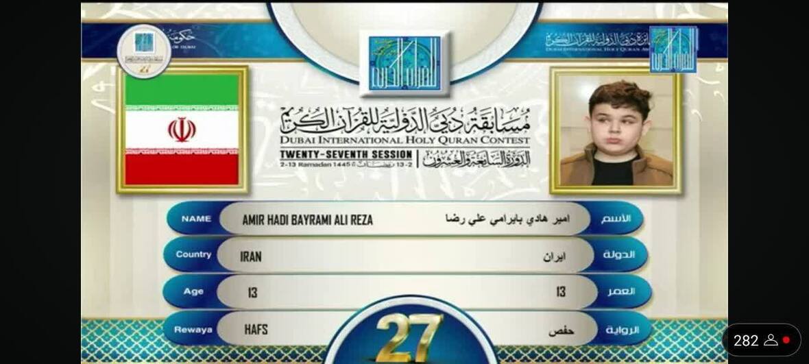 امیرهادی بایرامی، روشندل حافظ کل قرآن کریم طی روزهای گذشته برای حضور در بیست و هفتمین دوره مسابقات بینالمللی قرآن کریم کشور امارات عازم این کشور شد و 19 اسفند در مرحله مقدماتی این مسابقات حضور یافت. او در این مرحله به چهار سوال هیئت داوران پاسخ داد و با آمادگی کامل به مرحله نهایی راه یافت.