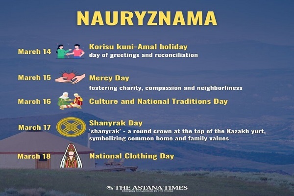 15 مارس(25  اسفند) با عنوان Kaiyrymdylyk kuni به نیکوکاری، شفقت و مهربانی اختصاص دارد.