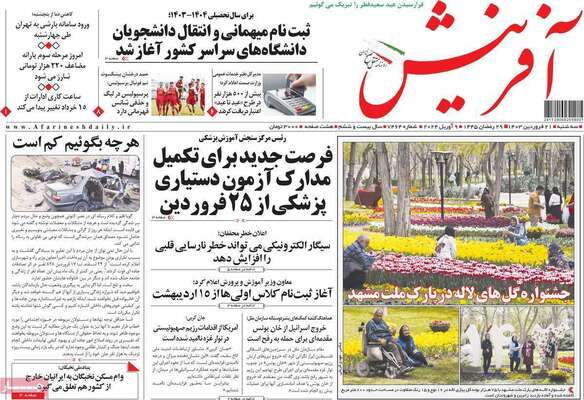 صفحه نخست روزنامههای سهشنبه ۲۱ فروردین ۱۴۰۳