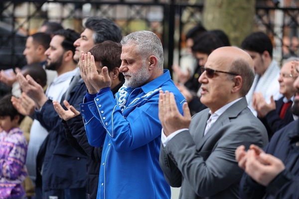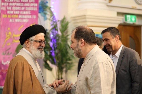 در پایان این آیین، نمازگزاران از ملیتهای مختلف در فضایی آکنده از مهربانی و صمیمیت، این عید بزرگ را به یکدیگر تبریک گفتند.