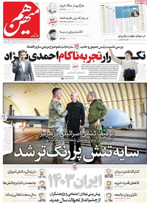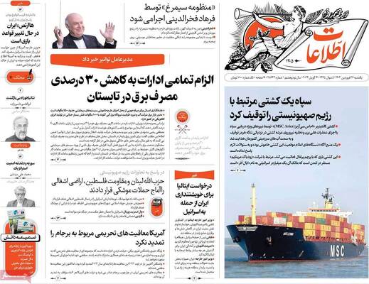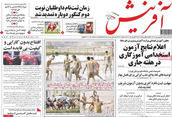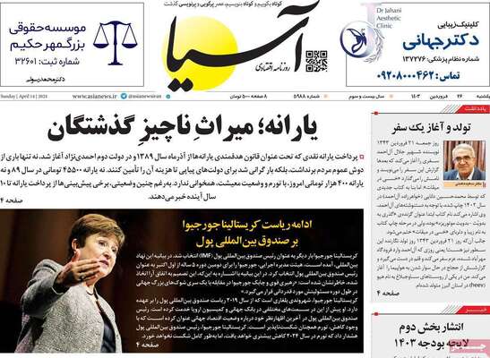 صفحه نخست روزنامههای یکشنبه ۲۶ فروردین ۱۴۰۳
