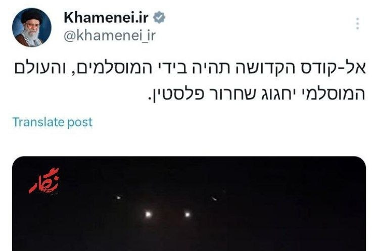 حساب ایکس (توییتر) Khamenei.i جملهای از رهبر معظم انقلاب را به زبان عبری منتشر کرده است.