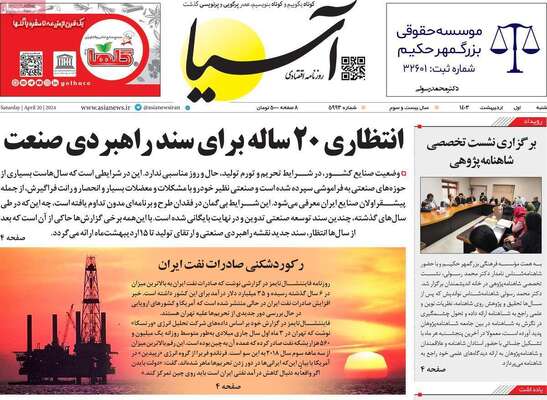 صفحه نخست روزنامههای شنبه ۱ اردیبهشت ۱۴۰۳