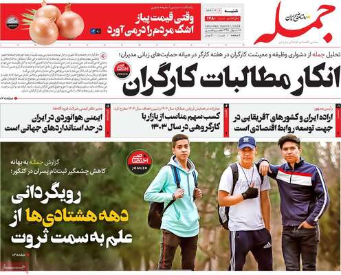 صفحه نخست روزنامههای شنبه ۸ اردیبهشت ۱۴۰۳ را در ادامه مشاهده میکنید.