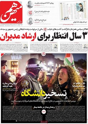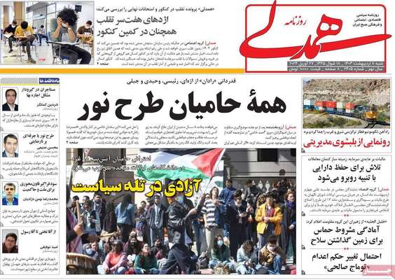 صفحه نخست روزنامههای شنبه ۸ اردیبهشت ۱۴۰۳