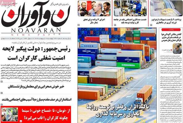 صفحه نخست روزنامههای چهارشنبه ۱۲ اردیبهشت ۱۴۰۳