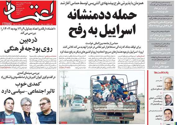صفحه نخست روزنامههای چهارشنبه ۱۹ اردیبهشت ۱۴۰۳