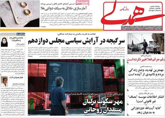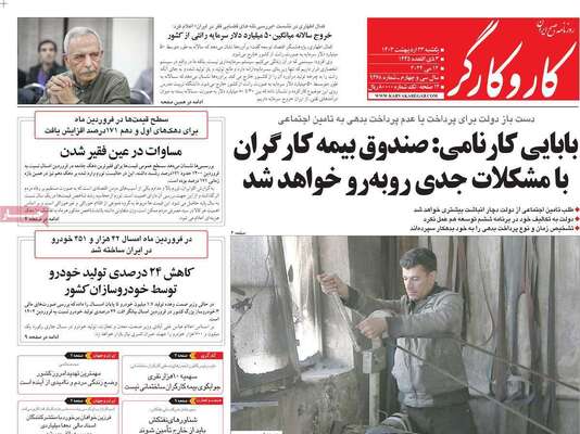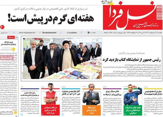 صفحه نخست روزنامههای یکشنبه ۲۳ اردیبهشت ۱۴۰۳ را در ادامه مشاهده میکنید.