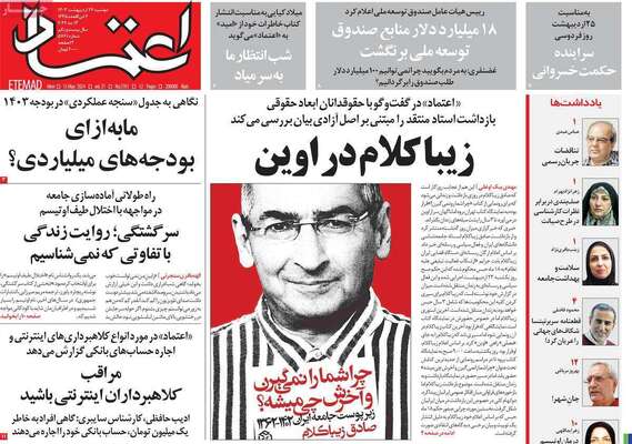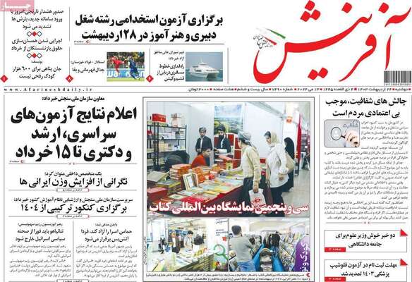 صفحه نخست روزنامههای دوشنبه ۲۴ اردیبهشت ۱۴۰۳ را در ادامه مشاهده میکنید.