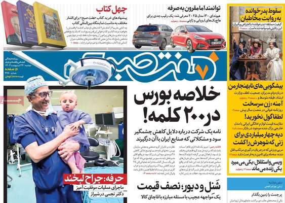 صفحه نخست روزنامههای یکشنبه ۳۰ آذر ۱۴۰۴