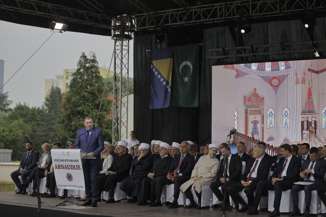 میلوراد دودیک، رئیس جمهوری صربسکا هم در سخنانی اظهار کرد: تخریب این مسجد یک اشتباه و عملی جنون‌آمیز بود. نه مردم و نه زمان را نمی‌توان با تخریب متوقف کرد. بازسازی مسجد آرنائودیه 30 سال پس از تخریب، نماد بی‌مفهومی تخریب آن است. این مسجد گواه این واقعیت است که صلح می‌تواند در این سرزمین وجود داشته باشد. همه حق دارند که متعلق به خود باشند و می‌توانند متفاوت و عضو یک قوم و اقوام دیگری باشند، اما همه ما باید با هم صلح را توسعه دهیم. اینجاست که می‌خواهیم توانایی ‌خود را از این دست نشان دهیم.