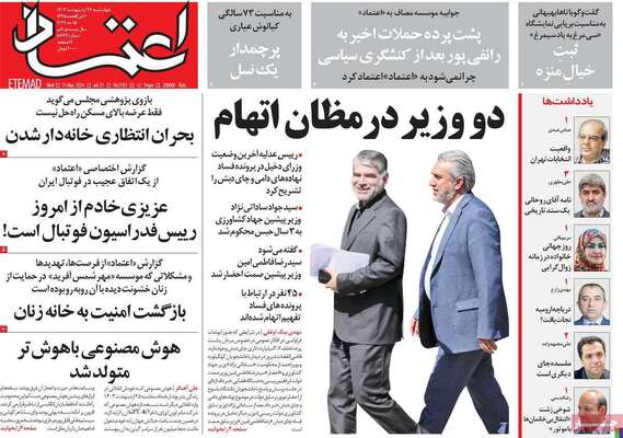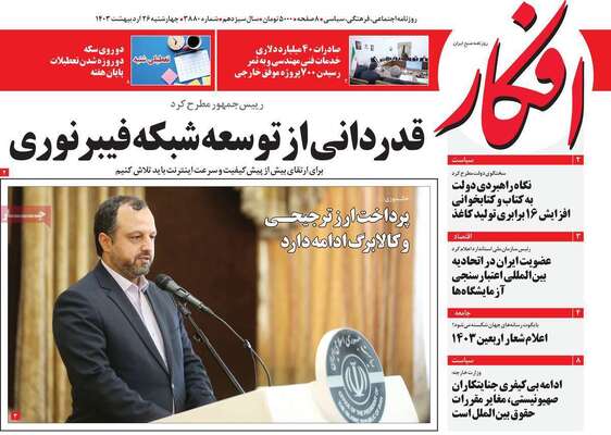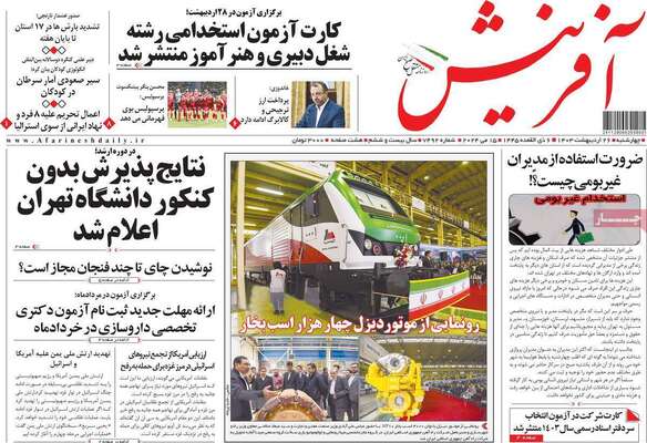 صفحه نخست روزنامههای چهارشنبه ۲۶ اردیبهشت ۱۴۰۳