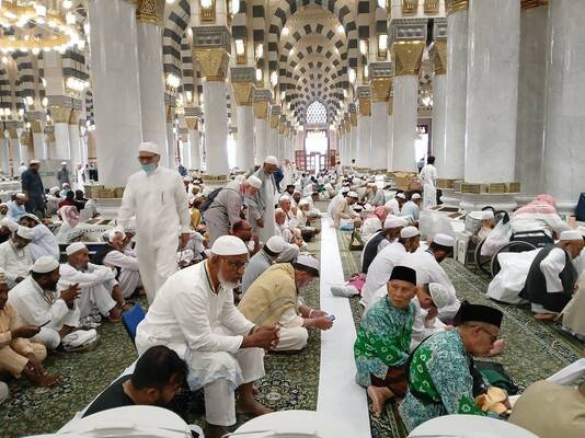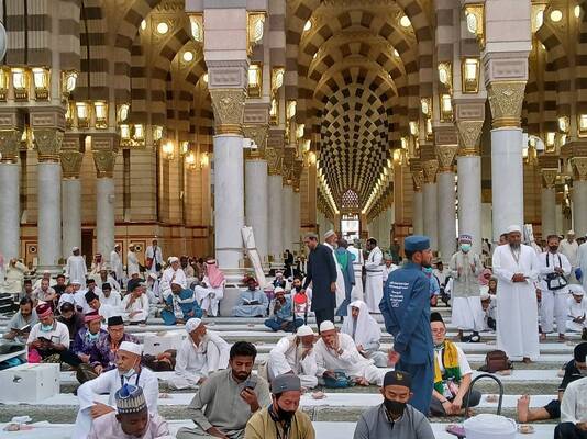 زائران تلاش میکنند تا نمازهای یومیه را در مسجدالنبی(ص) اقامه کنند و این مسجد نورانی و مبارک همچنین، شاهد حضور پررنگ بانوانی از کشورهای مختلف اندونزی، ایران، پاکستان، نیجریه و.. است که برای مشرف شدن به مکه مکرمه آماده میشوند.