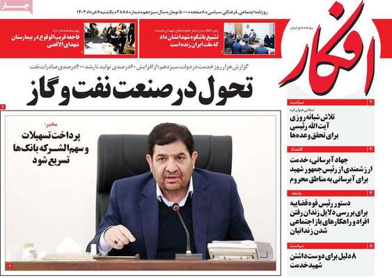 صفحه نخست روزنامههای یکشنبه ۶ خرداد ۱۴۰۳