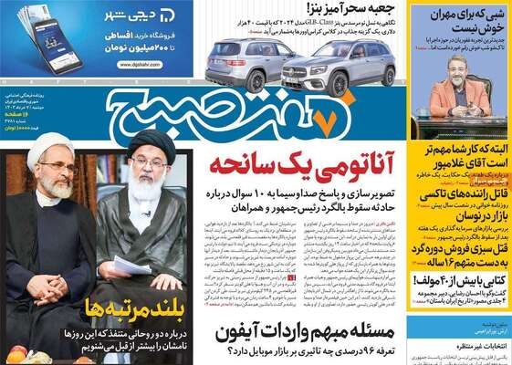 صفحه نخست روزنامههای دوشنبه ۷ خرداد ۱۴۰۳