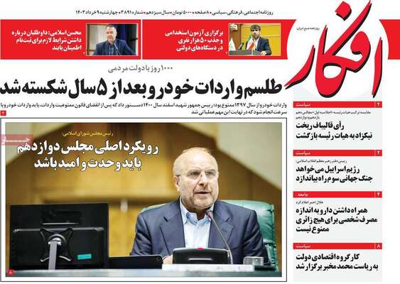 صفحه نخست روزنامههای چهارشنبه ۹ خرداد ۱۴۰۳