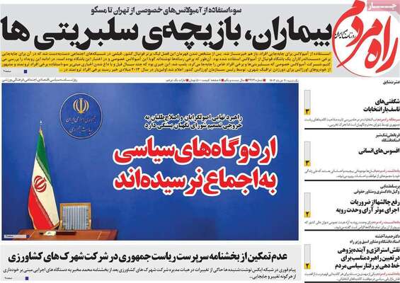 صفحه نخست روزنامههای یکشنبه ۲۰ خرداد ۱۴۰۳