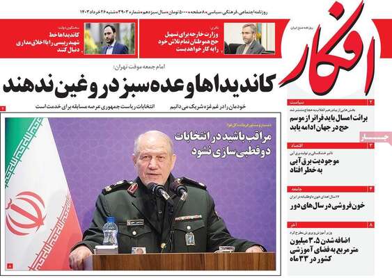 صفحه نخست روزنامههای شنبه ۲۶ خرداد ۱۴۰۳ را در ادامه مشاهده میکنید.