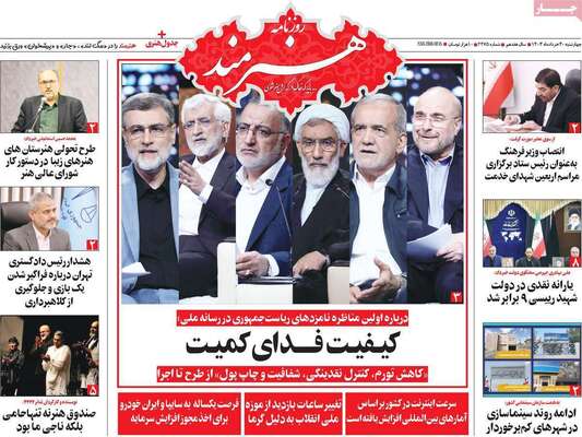 صفحه نخست روزنامههای چهارشنبه ۳۰ خرداد ۱۴۰۳ را در ادامه مشاهده میکنید.