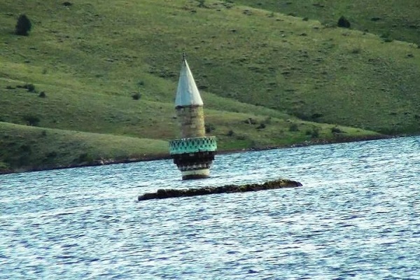 رسانههای ترکیه اعلام کردند: با بسته شدن درهای سد کاراکورت در فصل بهار، آب درختان و بناهای تاریخی این روستا را زیر آب فرو برد که تنها مناره مسجد ۱۰۰ ساله از آن باقی مانده است.