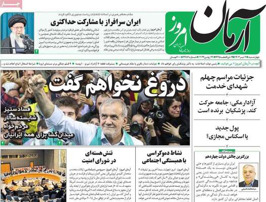 صفحه نخست روزنامههای چهارشنبه ۶ تیر ۱۴۰۳