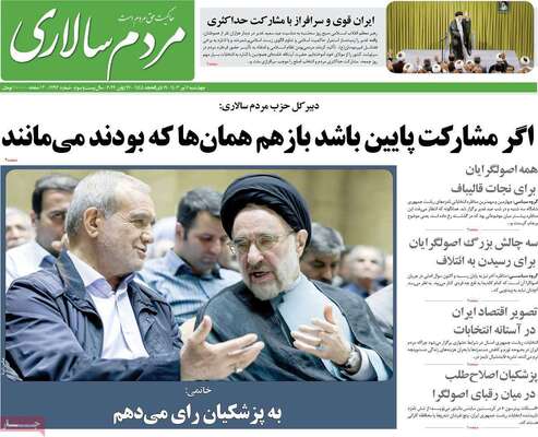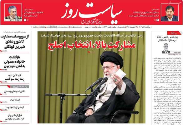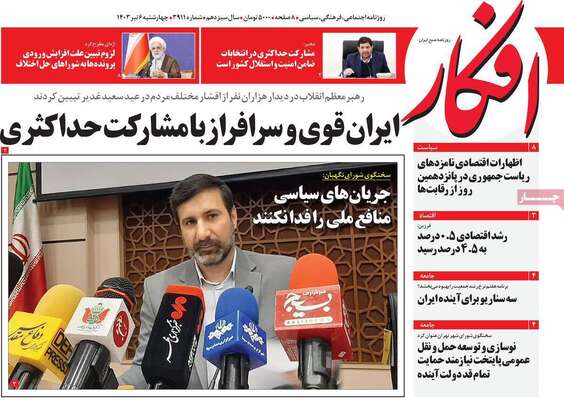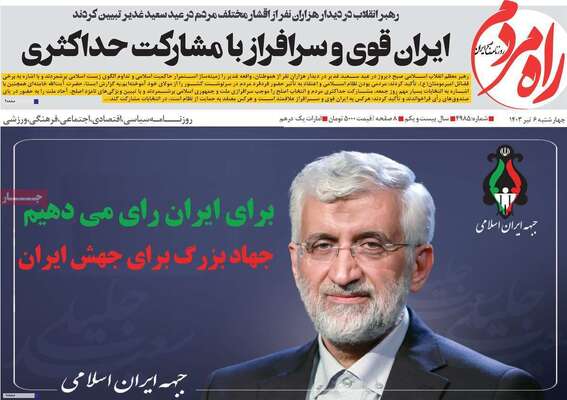 صفحه نخست روزنامههای چهارشنبه ۶ تیر ۱۴۰۳ را در ادامه مشاهده میکنید.